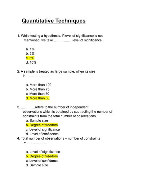 Read quantitative techniques multiple choice question and answers PDF